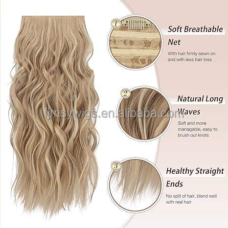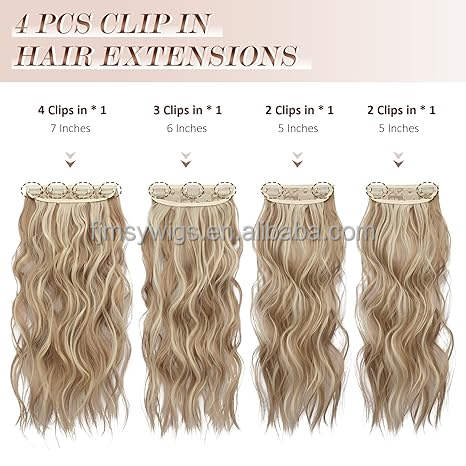 Nom du produit:Clip dans les extensions de cheveux 4 PCS Long ondulé