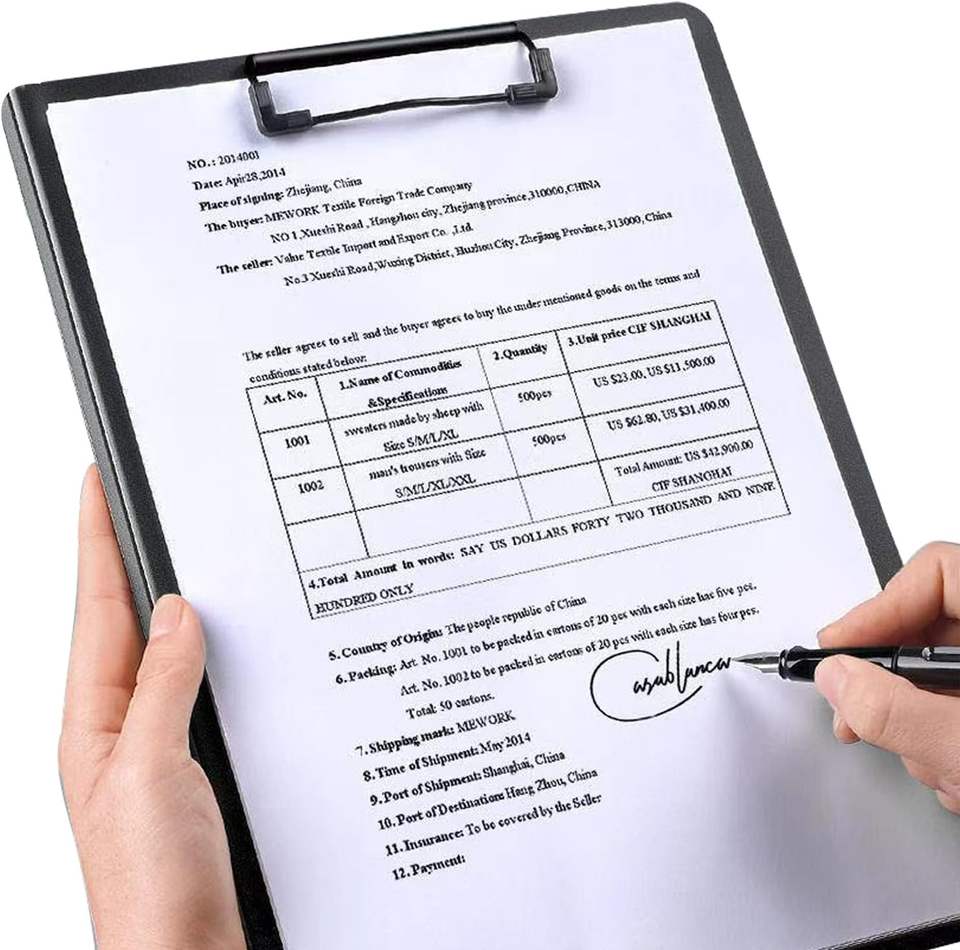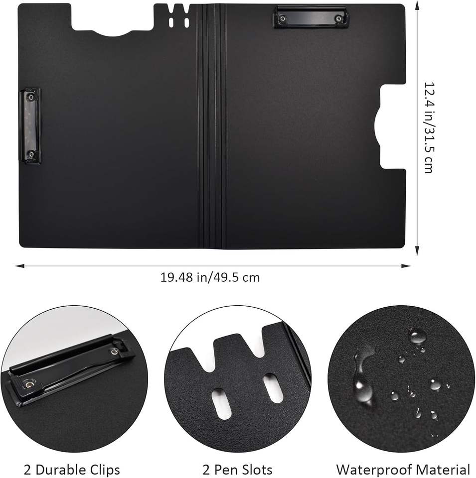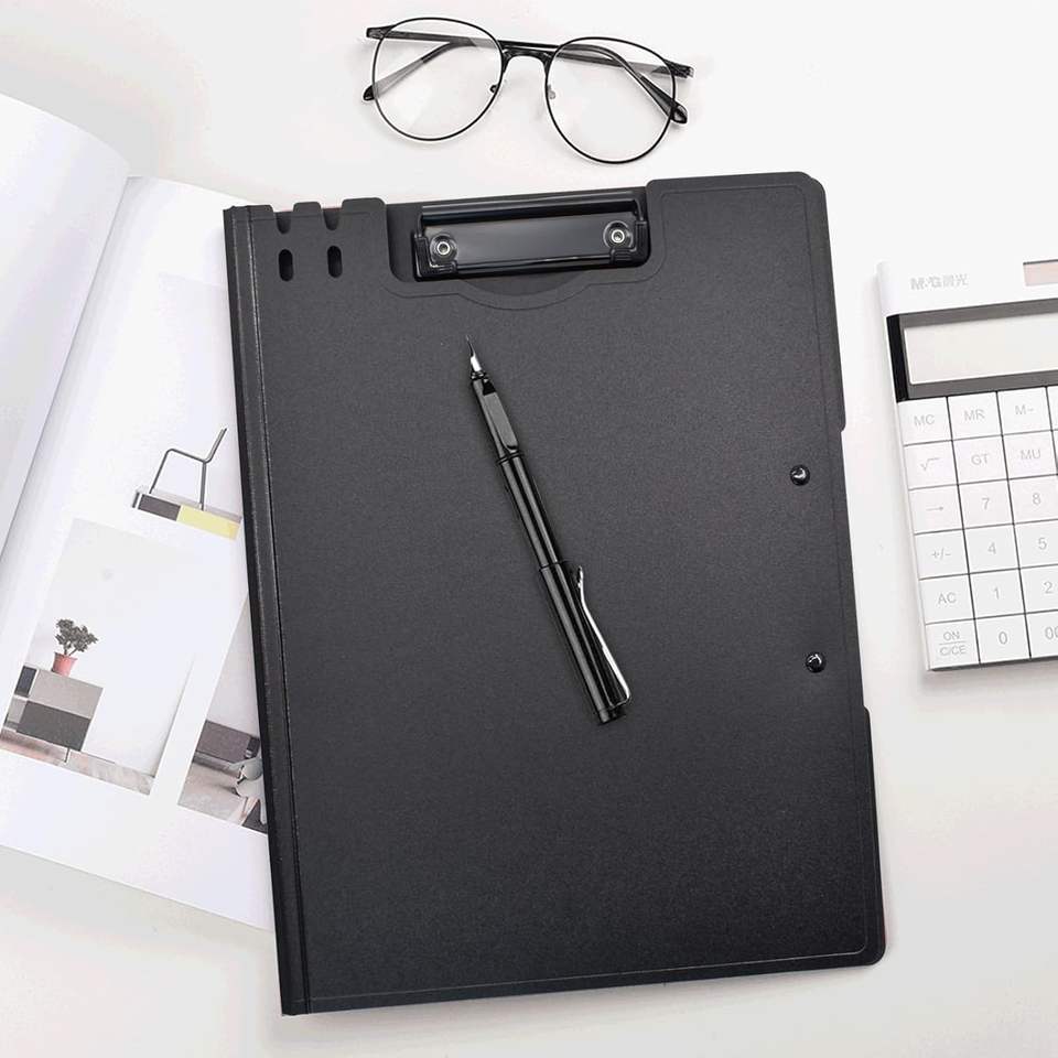 Porte-documents A4 avec double clip métallique, en PP, pliable, avec porte-stylo, pour bureau, école, salle de classe