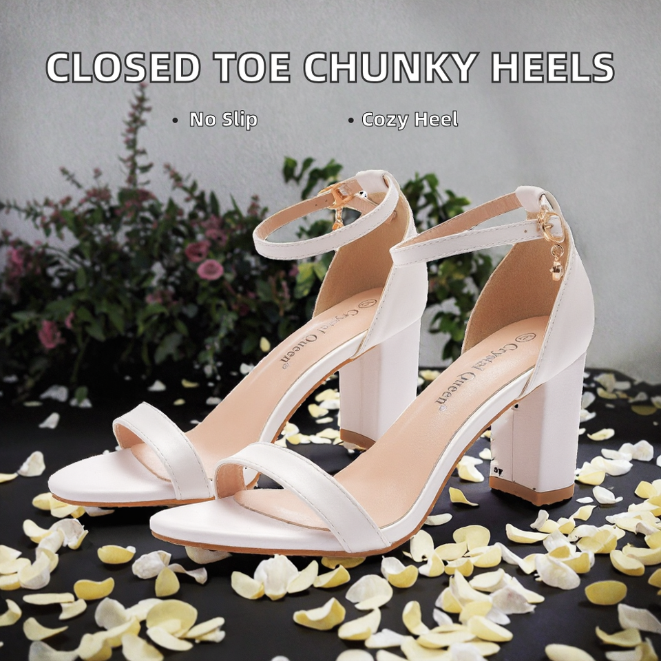 Escarpins d'été à bout fermé et bride cheville, talon épais 7-9 cm, pour femme, grandes tailles, chaussures de soirée, de mariée et de mariage à talon haut