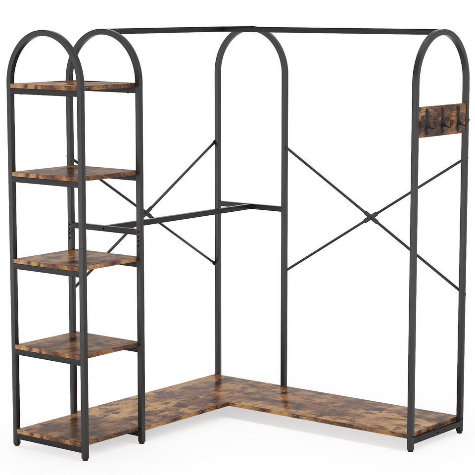 Organisation de rangement pour placard, porte-vêtements d'angle avec étagères de rangement et tringles de suspension, placard ouvert gain de place