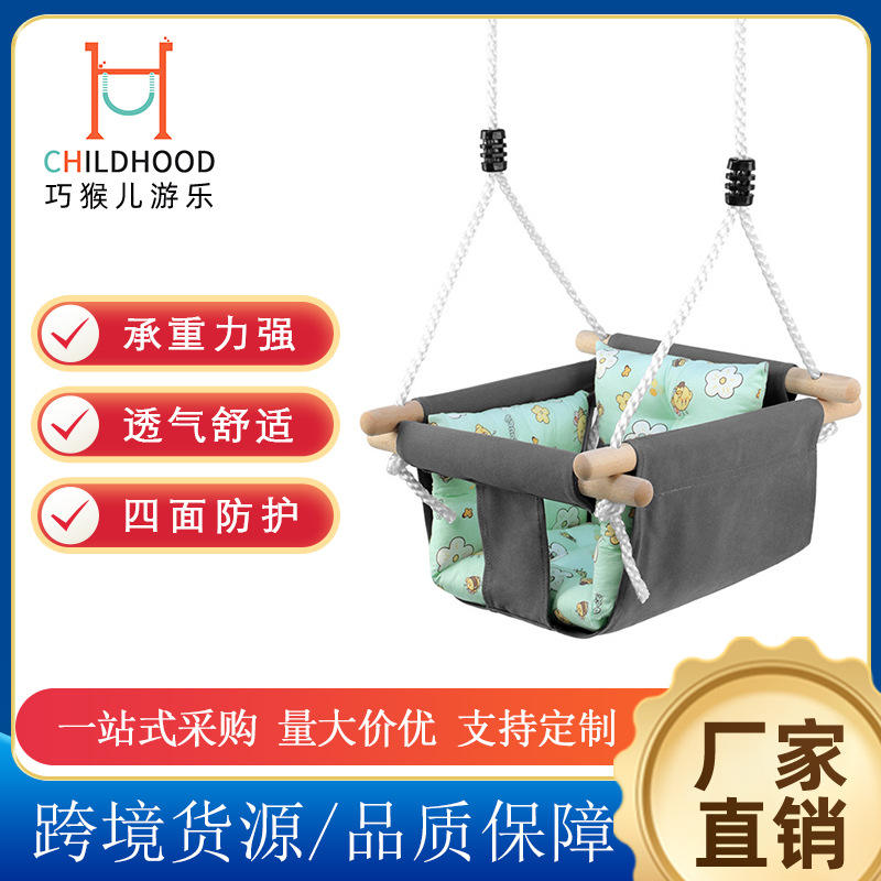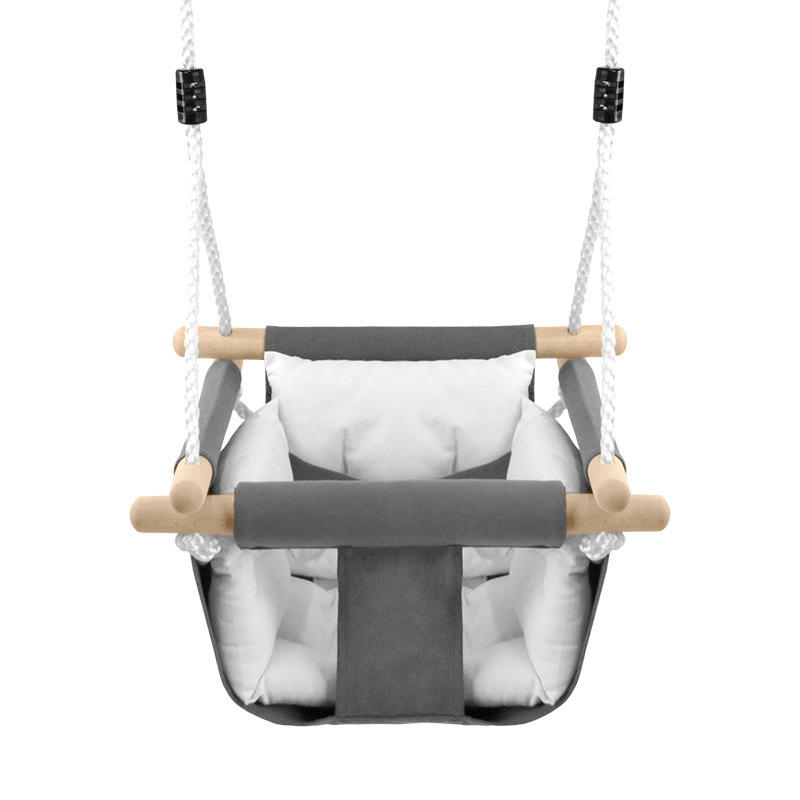 Balançoire recouverte de tissu pour bébé, chaise pour enfants avec structure en bois, siège en toile, sécurité garantie, pour l'intérieur et l'extérieur