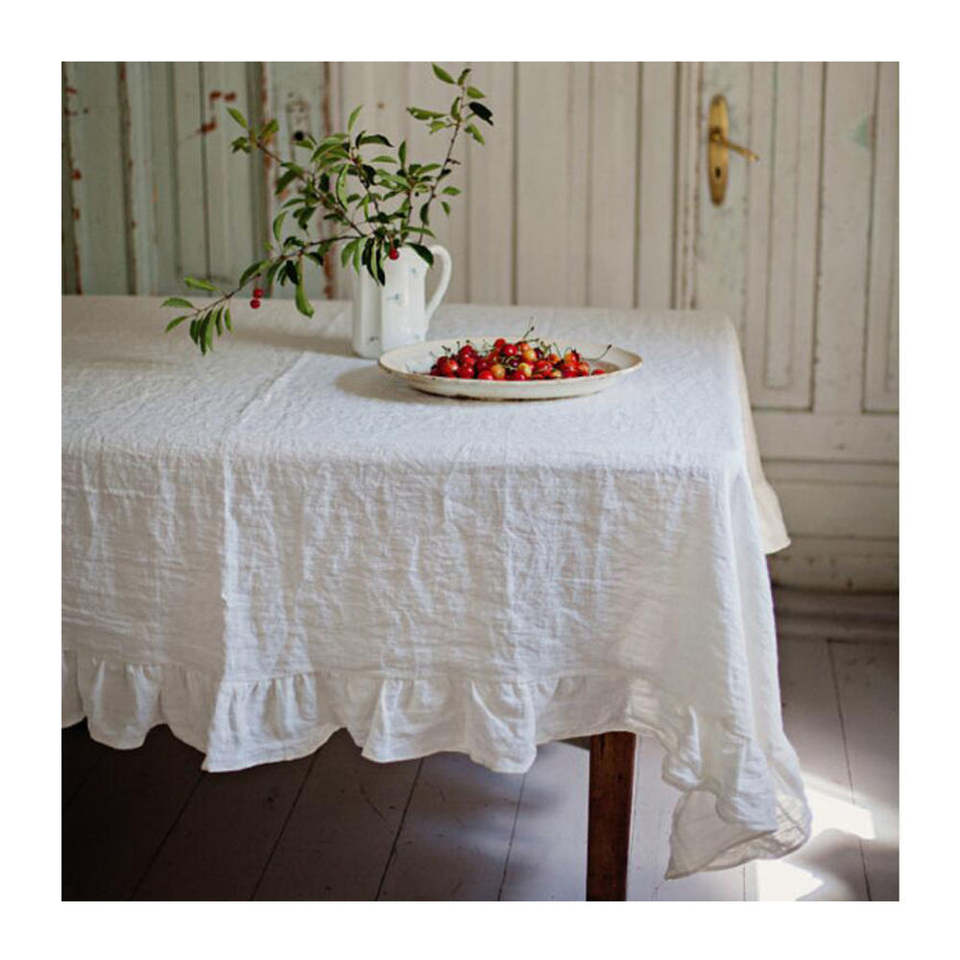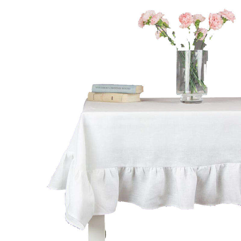 Nappe carrée de qualité supérieure 100% polyester, dentelle crochetée à perles, volant, jetable, anti-huile, imperméable, personnalisable, pour salle à manger