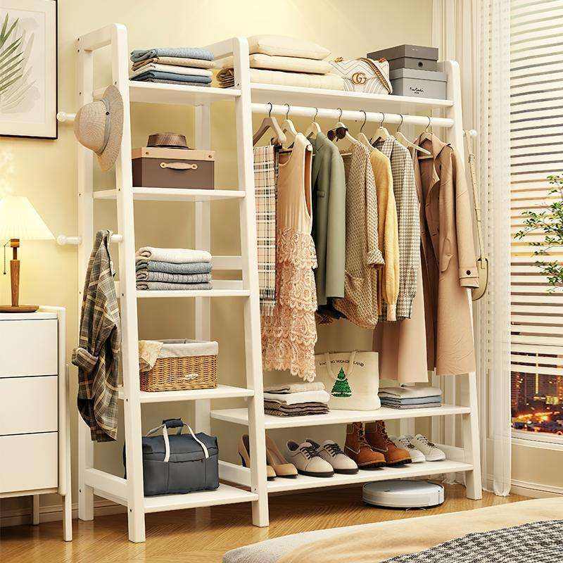 Porte-vêtements avec étagères et cintres pour rangement de chambre à coucher, blanc, sur pied, organisateur de vêtements multifonctionnel