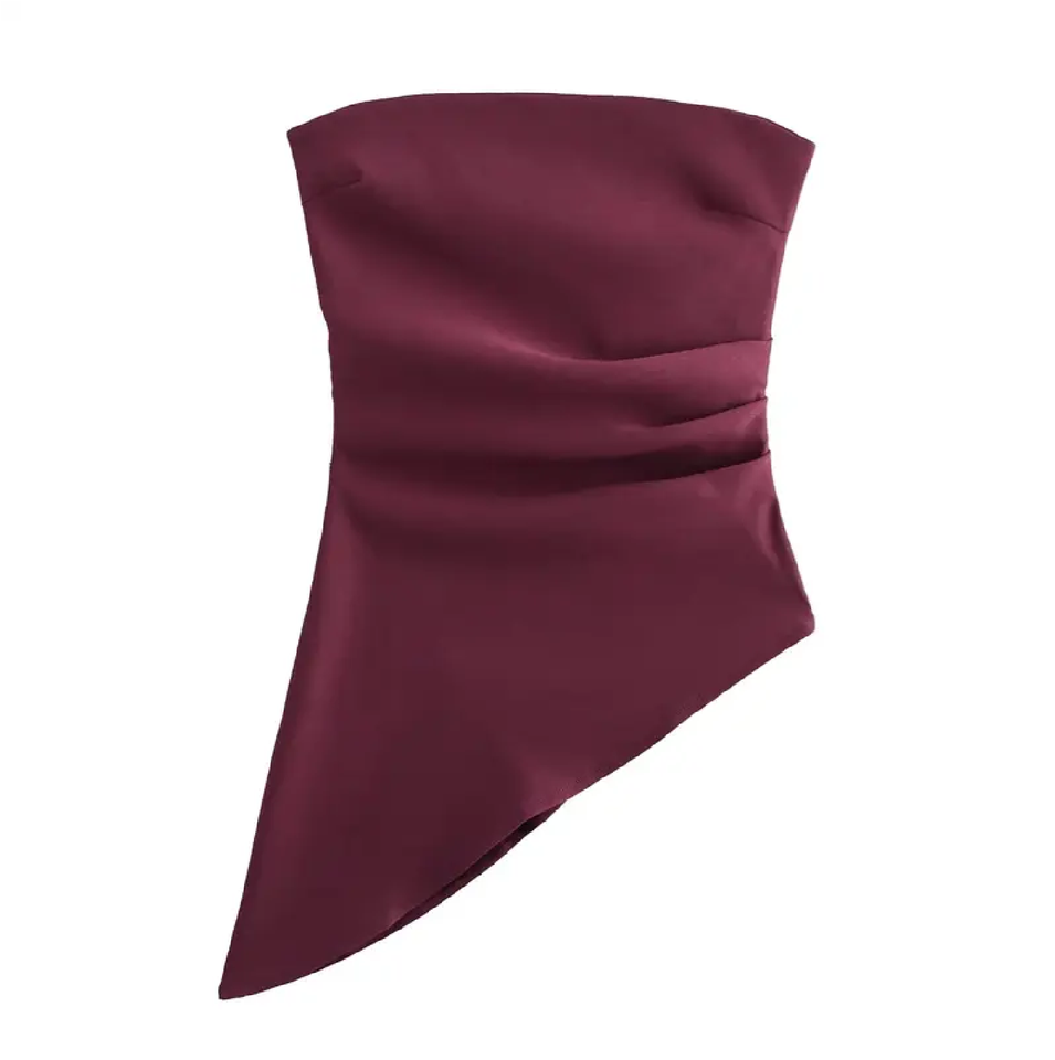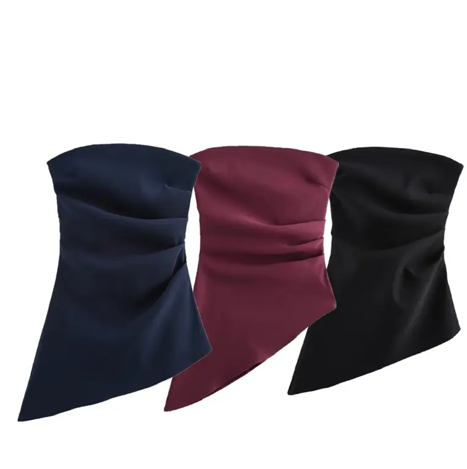 Clothing 2025 Autumn New Solid Color Sweet Pleated Decoration Asymmetric Top Buy T-shirt Sexy Wears Women Casual Top