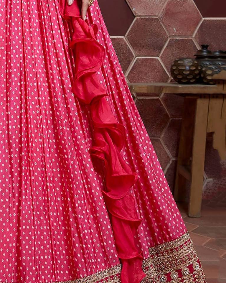 Fabric Details Lehenga:Digital Print with Heavy Sequins and Dori Embroidery
