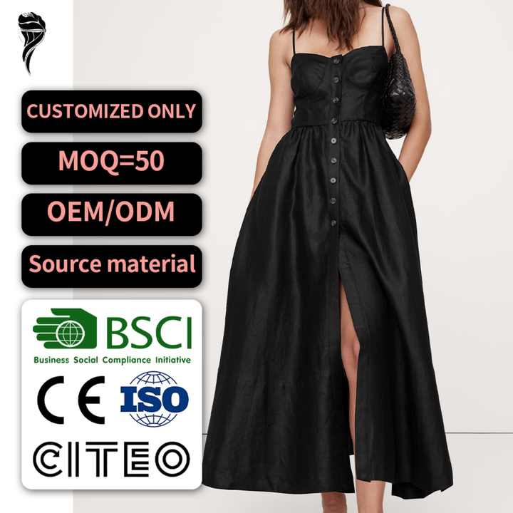 Fabricant de vêtements, robe d'été à bretelles spaghetti personnalisée avec étiquette privée, robe décontractée sexy et modeste pour femme