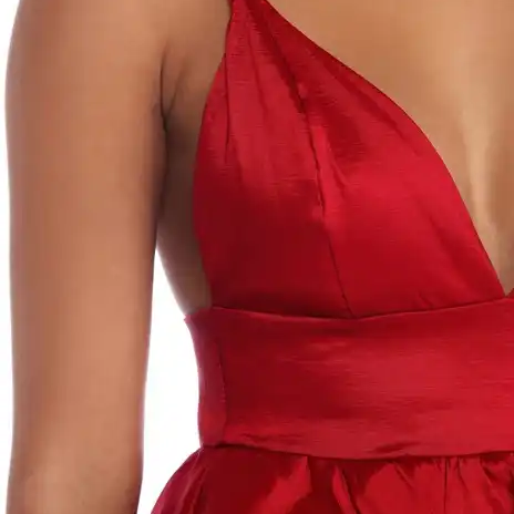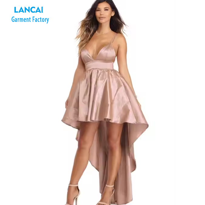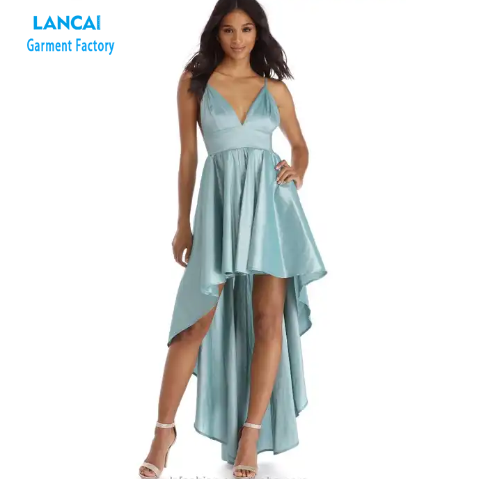 Name:High-low prom woven dress with thin adjustable st