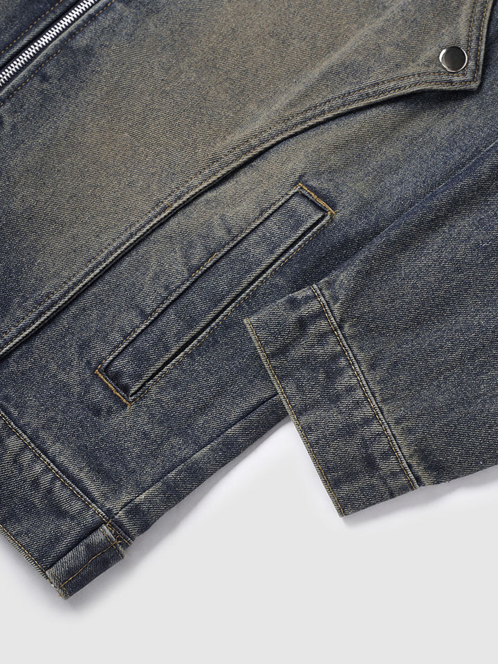 Clothing Manufacturers Washed Distressed Zip Patchwork Denim Fabrics Custom Denim Jacket Men Men's Jackets