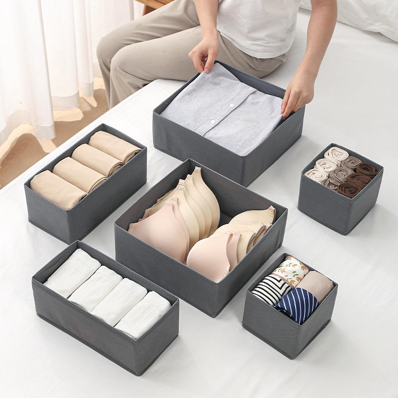 Organisateur de vêtements pliable de style tiroir avec fermeture éclair inférieure pour le rangement des sous-vêtements, rectangulaire, couleur unie, empilable