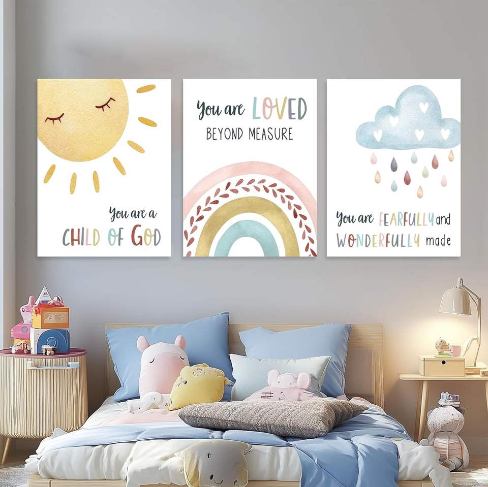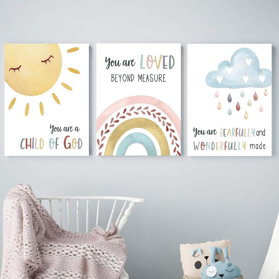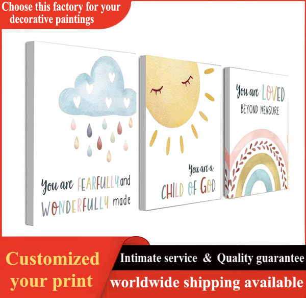 Nuages, soleil et arc-en-ciel Poster Core, chambre et hall d'entrée peinture avec cadre intérieur en bois de pin. Service OEM/ODM