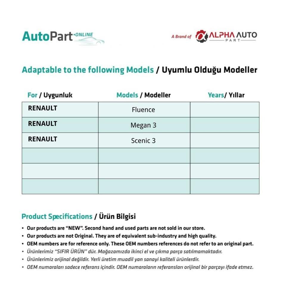 Marque nom:Renault Compatible Spare Parts