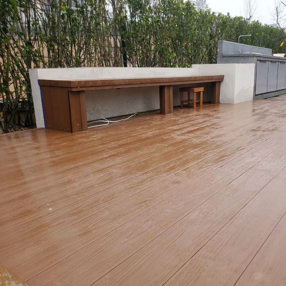 Planche de terrasse en WPC extérieure co-extrudée Clips de terrasse antidérapants imperméables résistants aux fissures bio-couleur pour parc de jardin extérieur