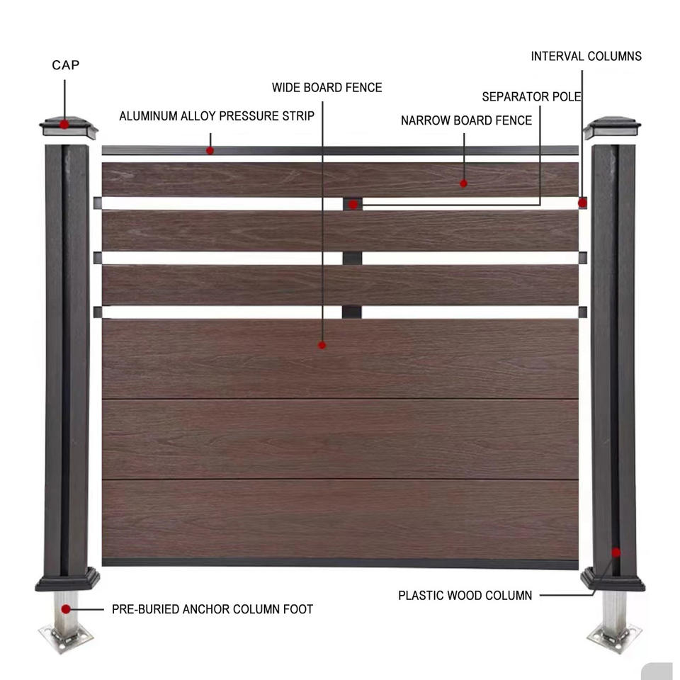 Panneau de clôture WPC co-extrudé couleur bois vieilli pour extérieur, idéal pour clôtures et portails