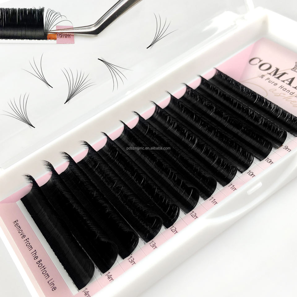 CoMango Wholesale Individual Velvet De Cils Lash Trays Matte Dark Black Fluffy Volume Silk Eyelash Extensions