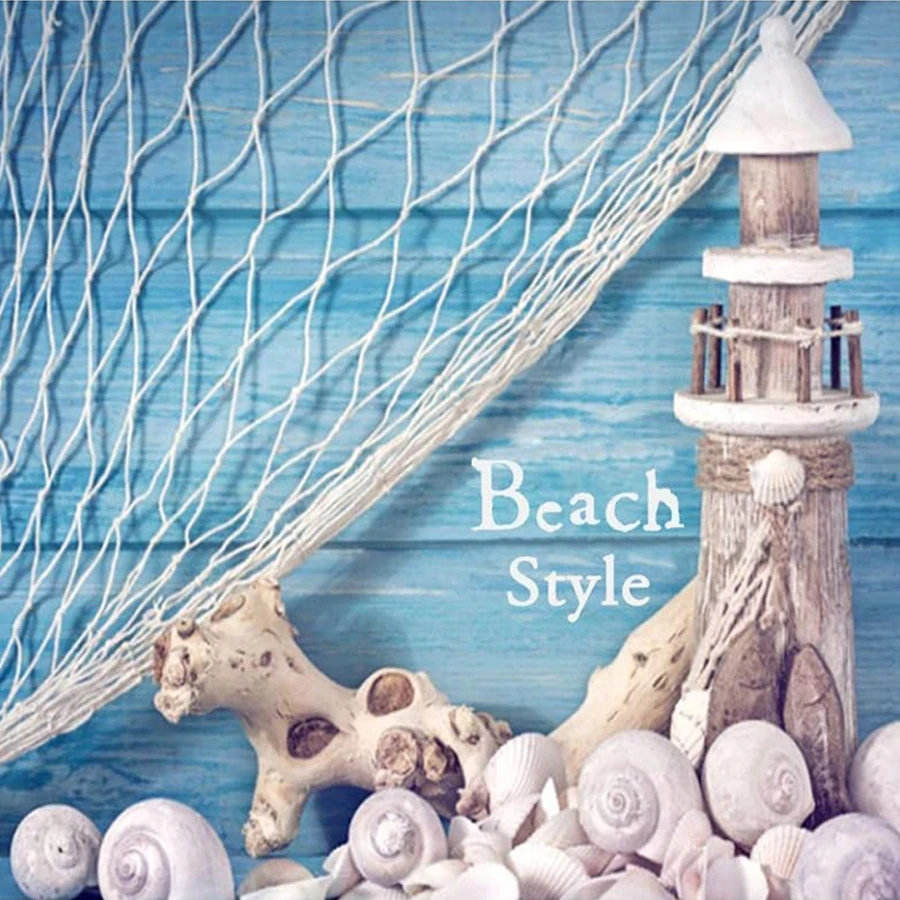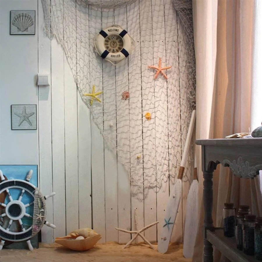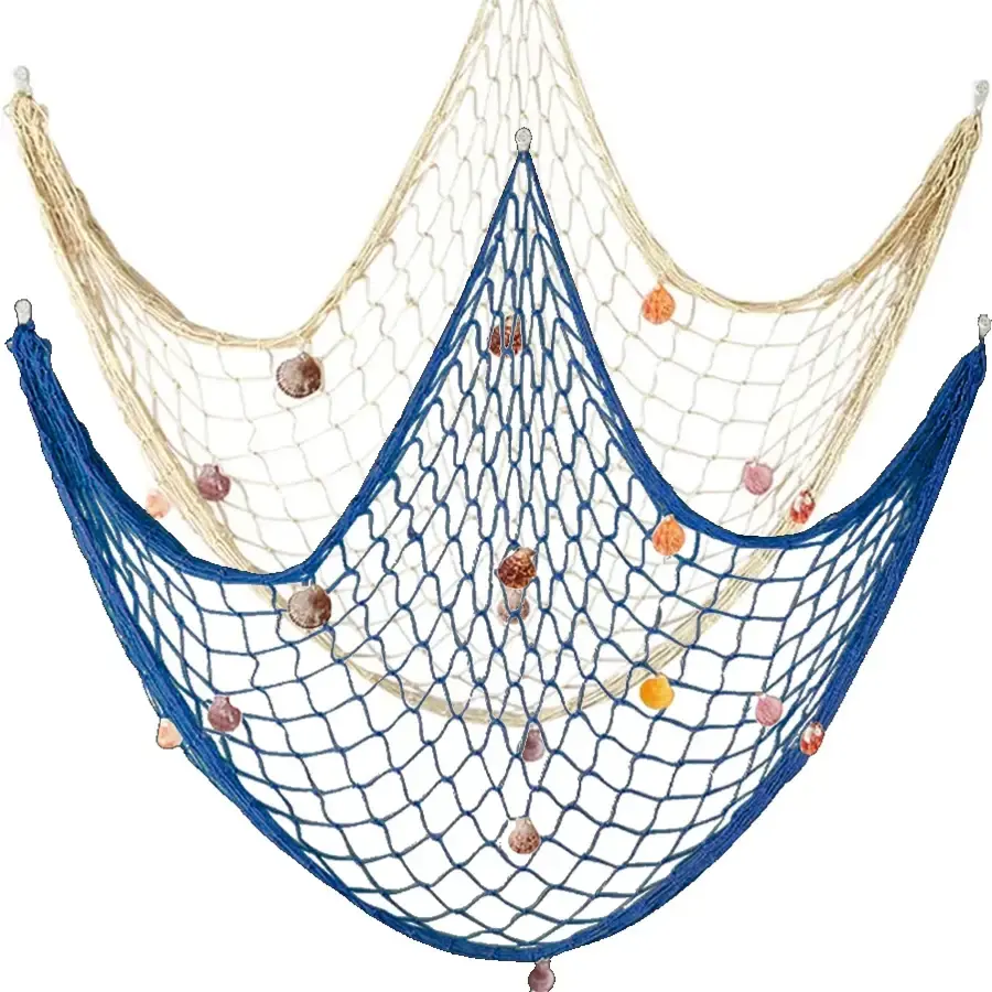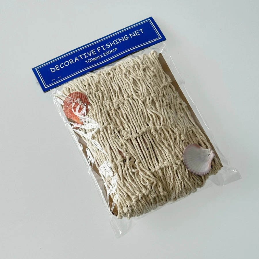 Décoration de filet de pêche en résine à motif paysager artisanal, thème plage et coquillages, design côtier, à suspendre sur corde