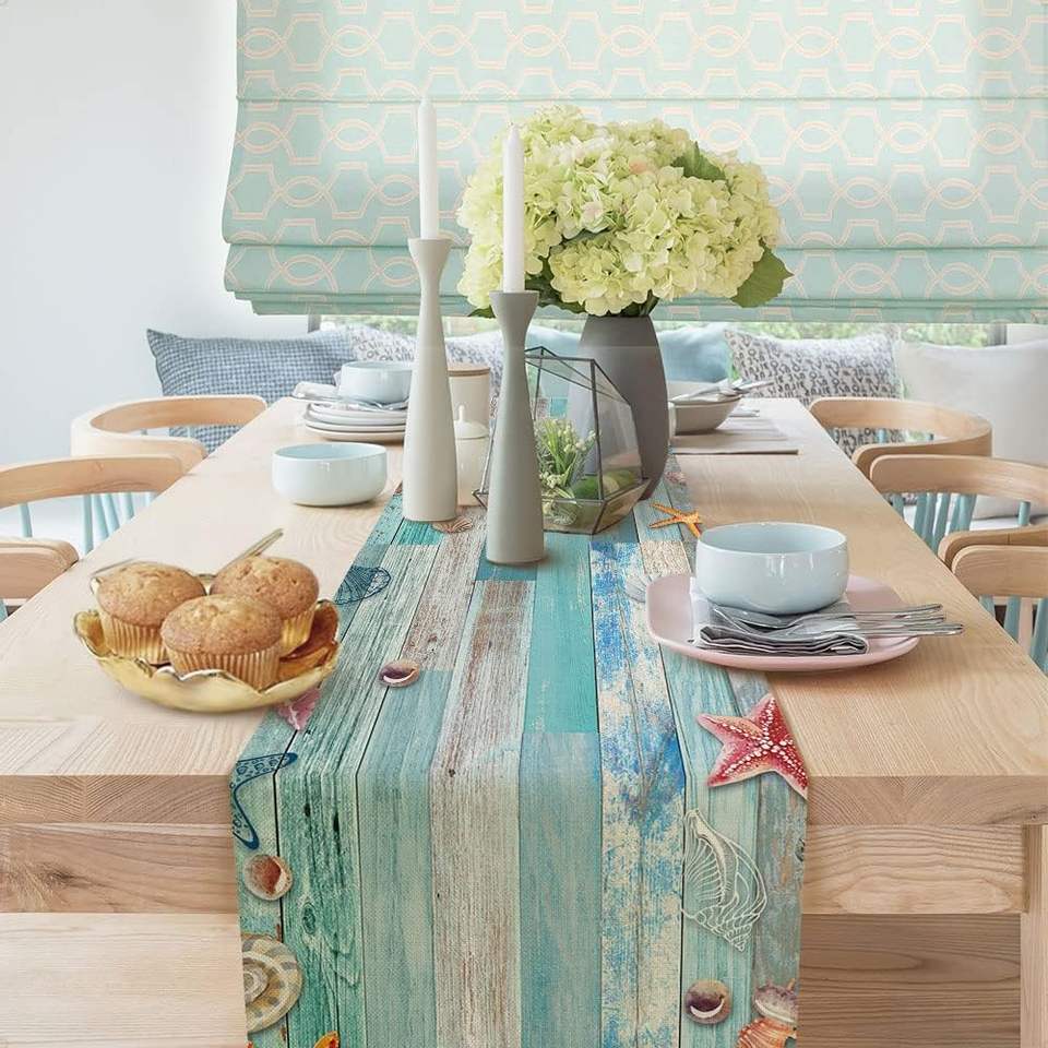 Chemin de table de cuisine nautique côtier lin de plage antidérapant avec étoile de mer coquillage d'océan pour les repas de printemps