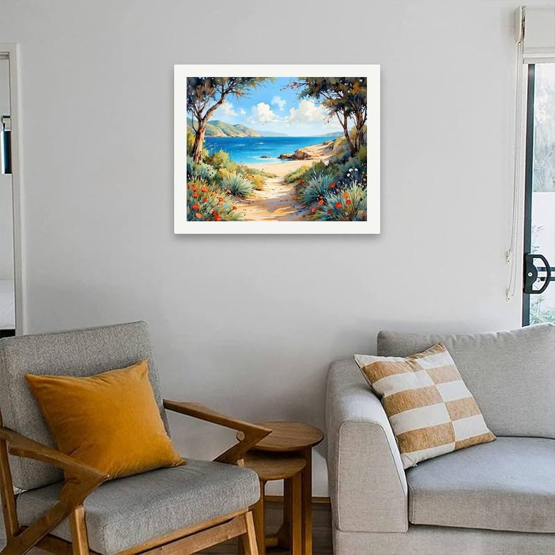 Kit de peinture par numéros de chemin côtier pour adultes-Sentier de bord de mer bricolage avec fleurs 16x20 pouces, décoration d'art sans cadre ou cadeaux