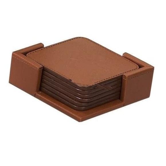 Dessous de verre en cuir PU, 4 pièces, de couleur marron, Premium, avec support