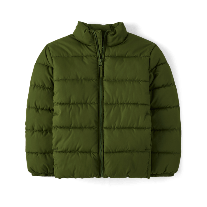 Doudoune enduite pour garçons en vert imperméable et coupe-vent avec col montant en polyester manteau de style décontracté