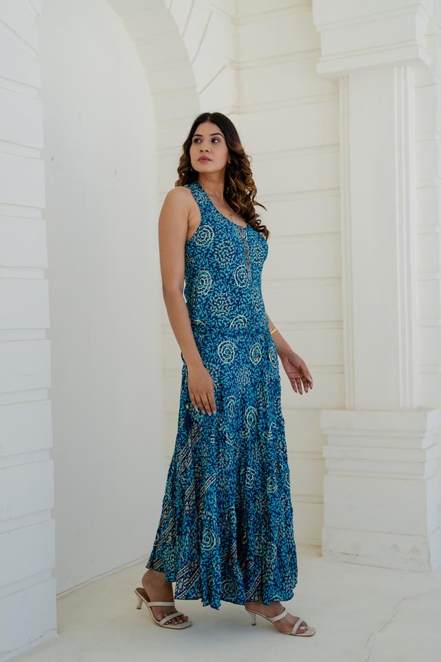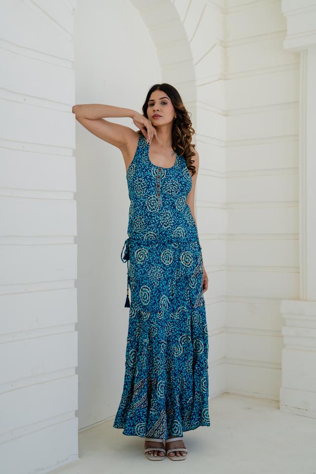 Cobalt and White Graphic Print Two Piece Set Halter Crop Top and Wide Leg Trousers Bold Summer Holiday Boho Coord Clothing