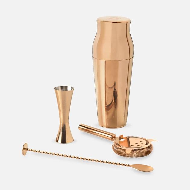 Ensemble de shaker à cocktail en cuivre inoxydable pour accessoires de bar et de maison avec quantité en vrac de bouteille de cuillère à gobelet disponible.