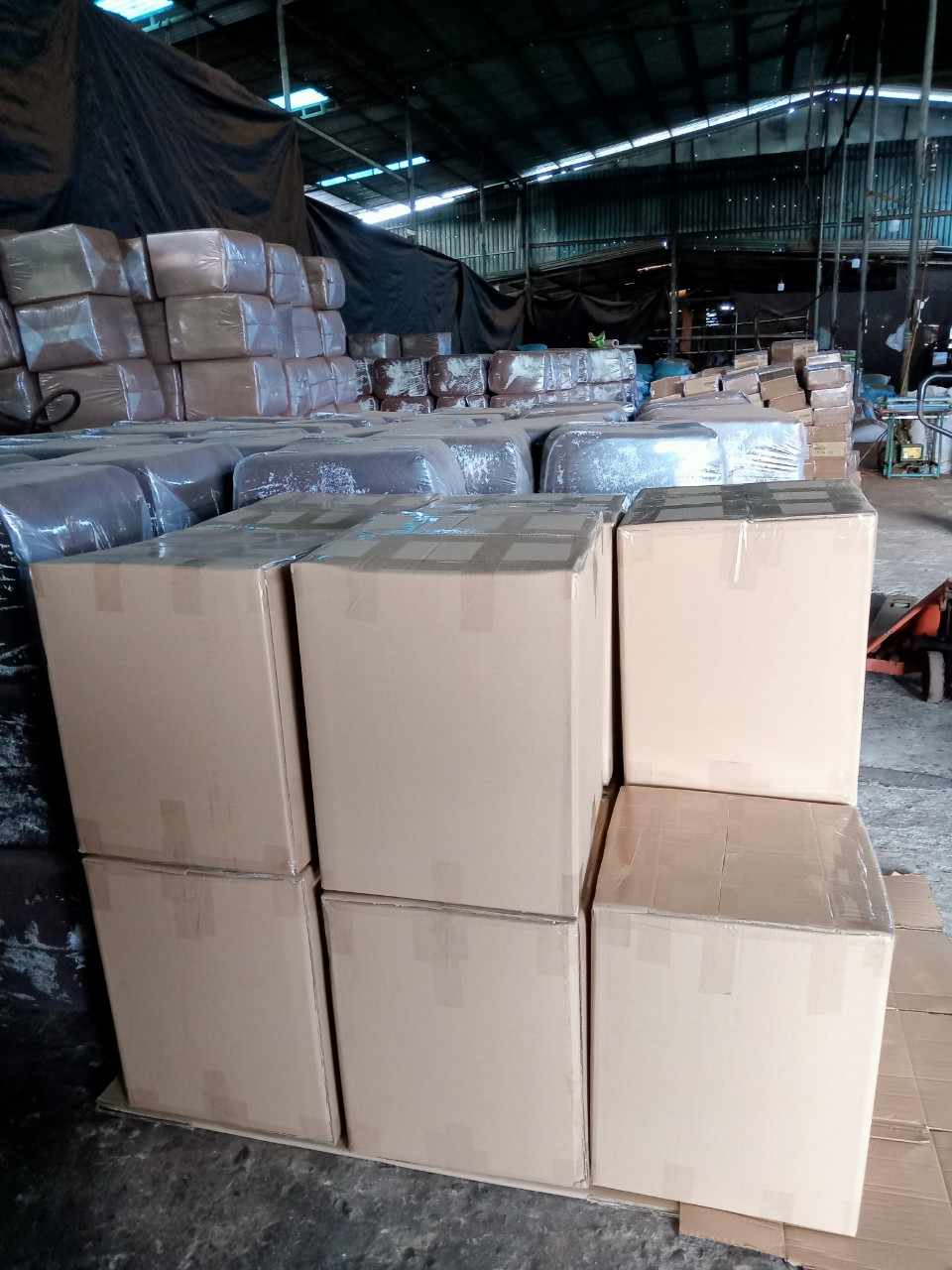 Dans le sac de PE et puis dans le carton