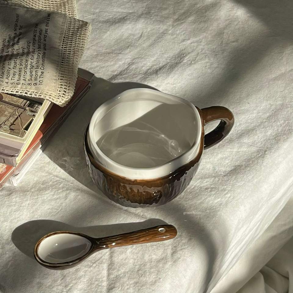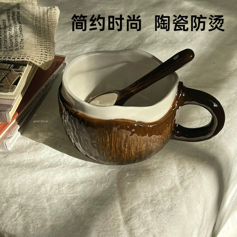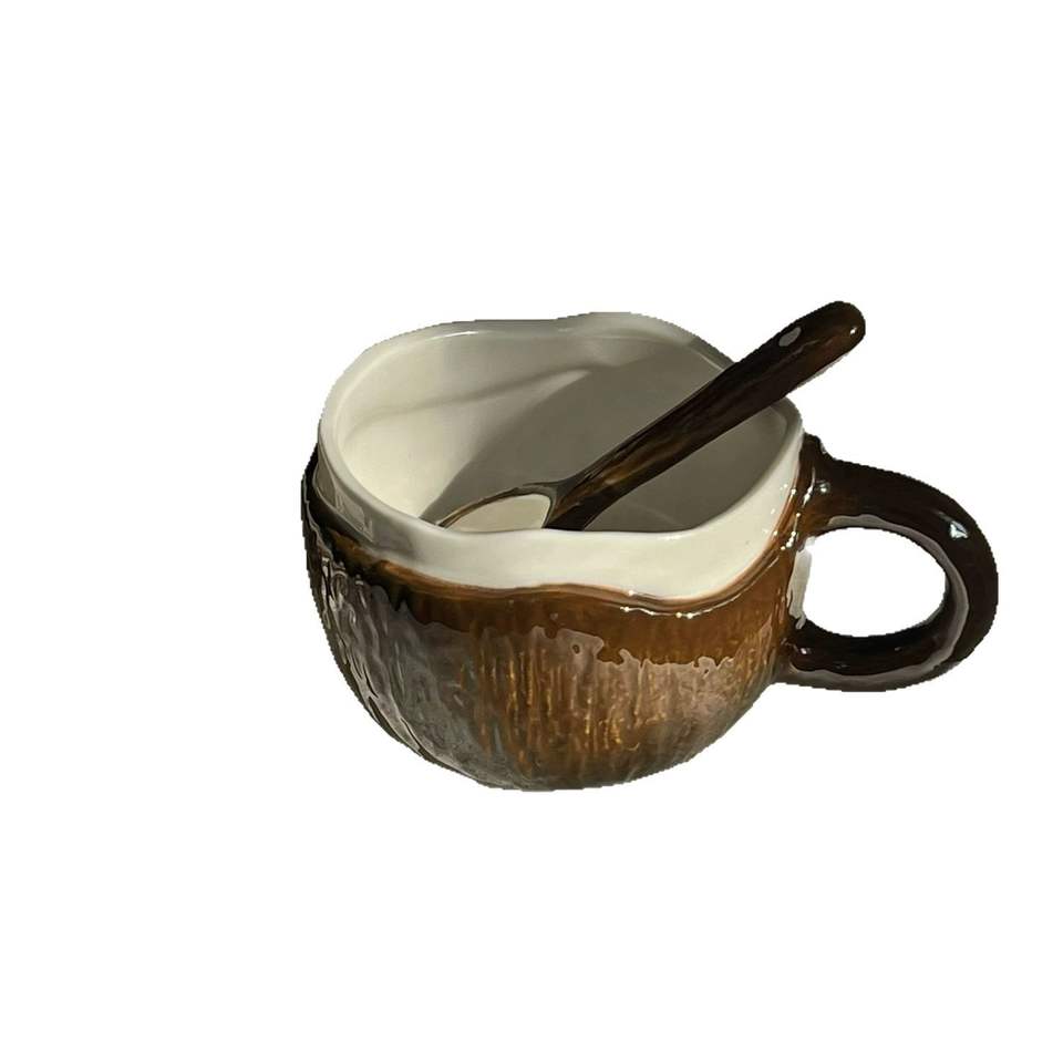 Tasse à café en céramique au design noix de coco, tasse en coquille de noix de coco marron avec cuillère, résistante à la chaleur, cadeau pour le thé de l'après-midi et le petit-déjeuner