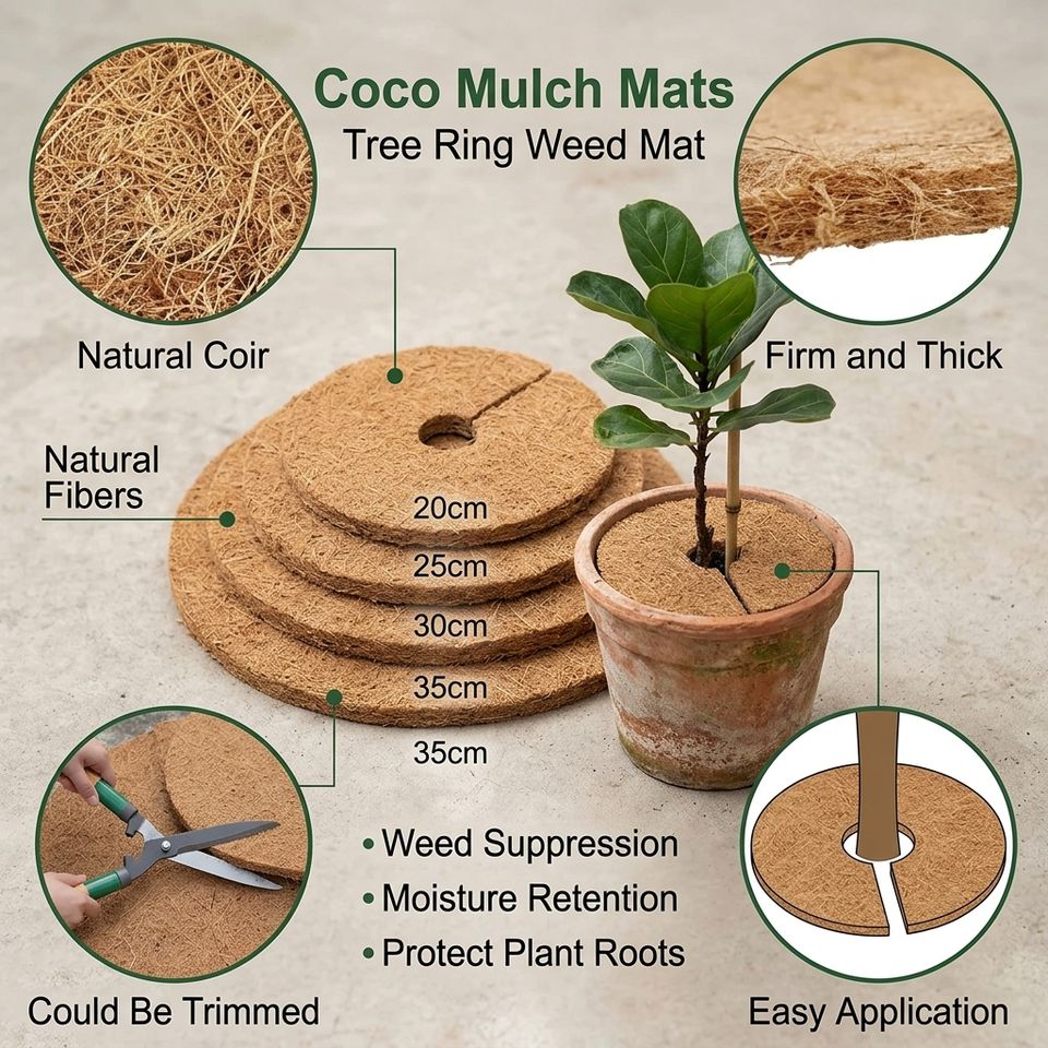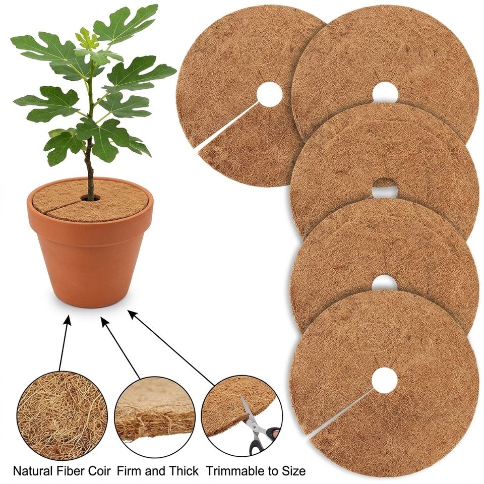Paillis de fibres de coco 6 pouces, lot de 5, pour le contrôle des mauvaises herbes et les cercles de protection des arbres, tapis de protection des plantes, paillis de jardin peu encombrant, biodégradable