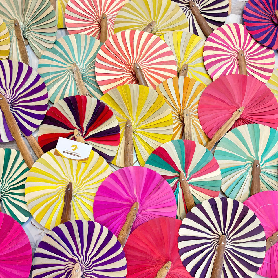 Éventail à main en feuille de coco, éventail à main en feuille de palmier naturel, poignée en bambou écologique colorée pour la décoration de mariage, éventail en palmier de coco du Vietnam