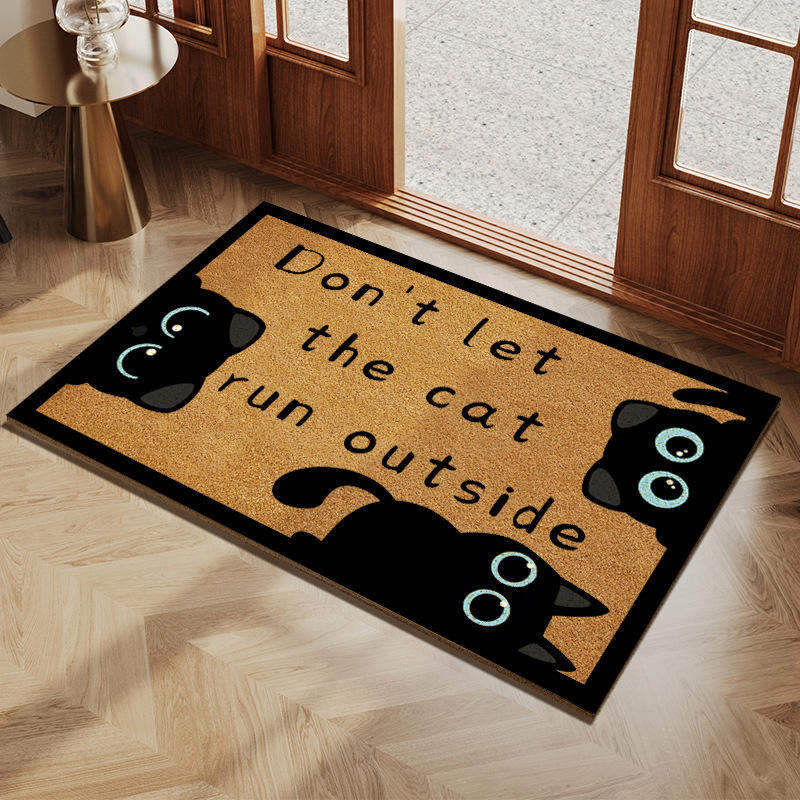 Paillasson rectangulaire motif floral en fibre de coco antidérapant pour entrée de maison avec message de bienvenue