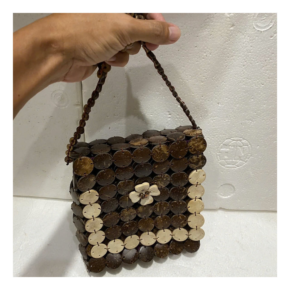 Bandoulière en coquille de noix de coco, légère et écologique, ajoute une touche naturelle à toute tenue, idéale pour les festivals d'été ou les rendez-vous à la plage