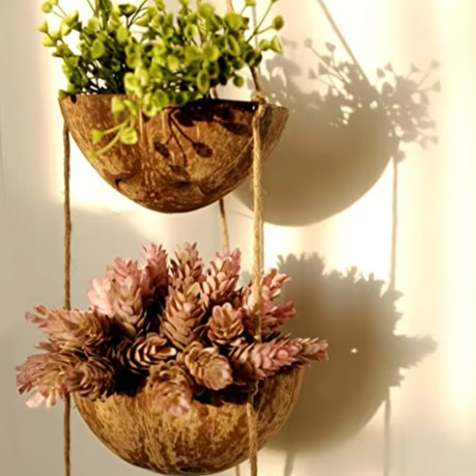 Coconut Shell Plant Pot Vietnam Natural Handmade Shell Planter With Hanging Holes For Garden And Home Use