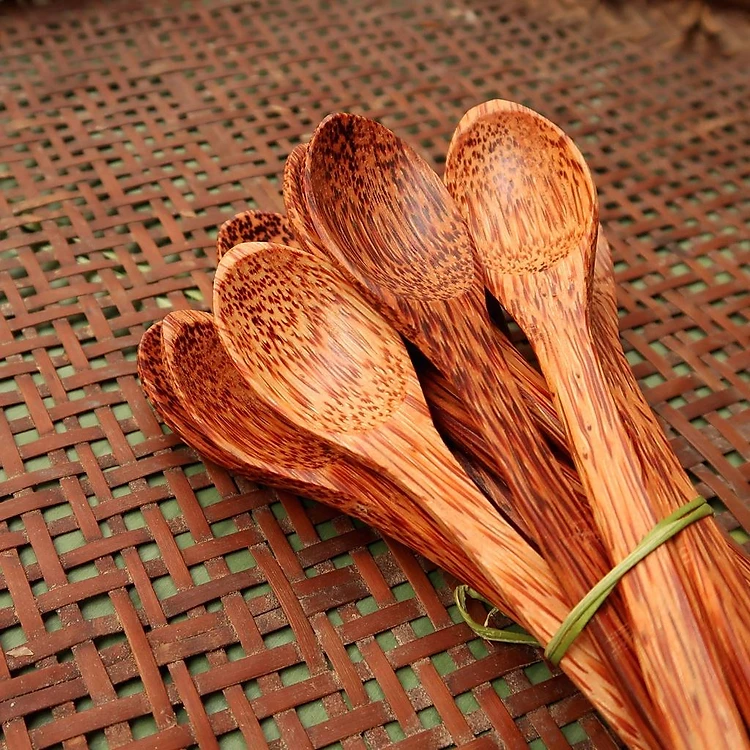 Cuillère en bois de noix de coco-Ustensile écologique fabriqué à la main du Vietnam Cuillère à noix de coco naturelle Texture en bois naturel
