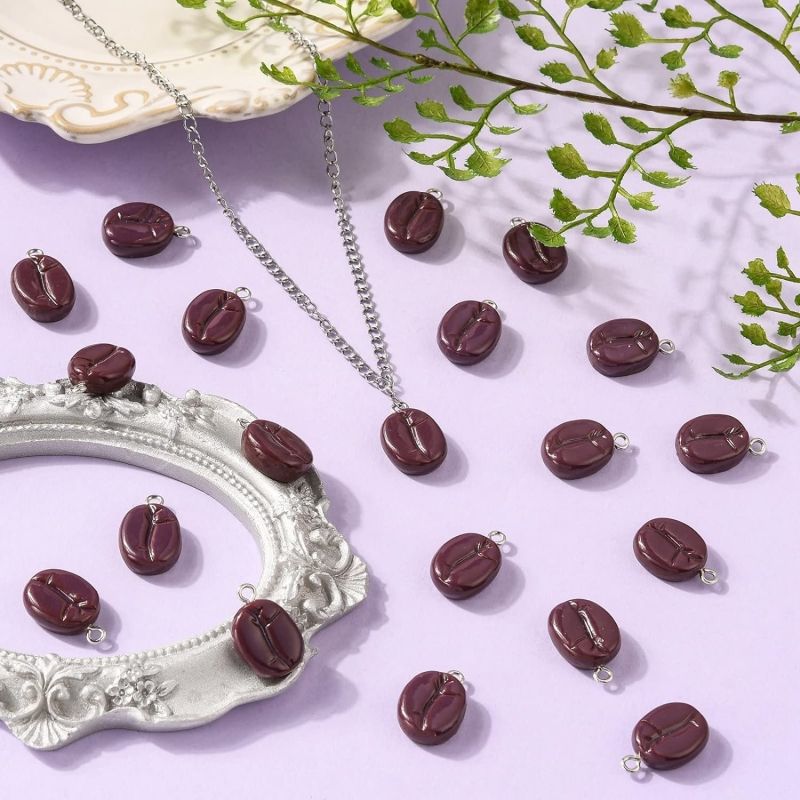 Grain de café breloques résine 3D Simulation alimentaire breloques café Mini Imitation café breloques pour la fabrication de bijoux Bracelets collier