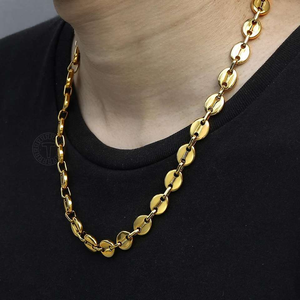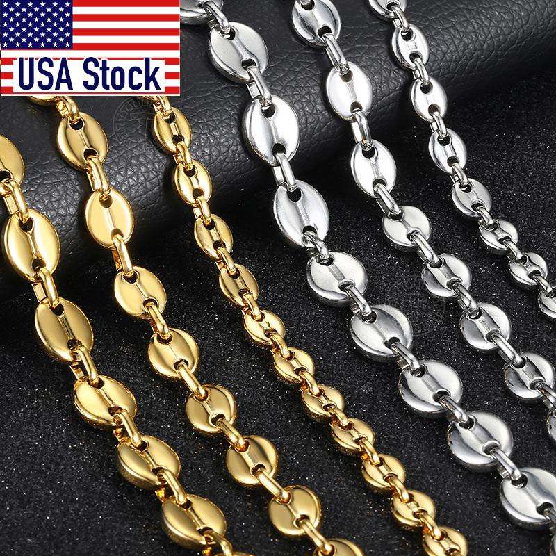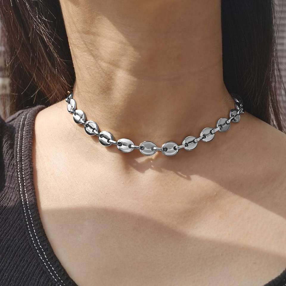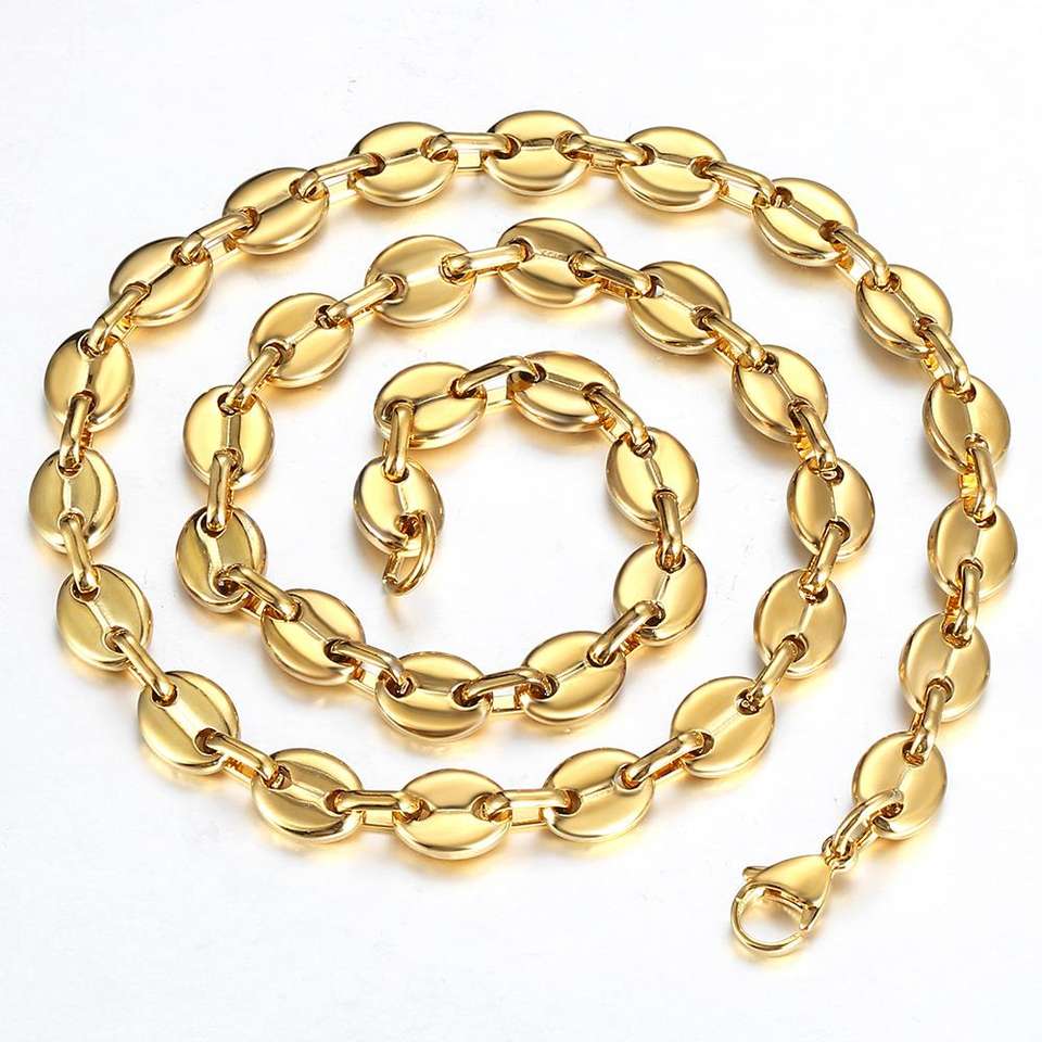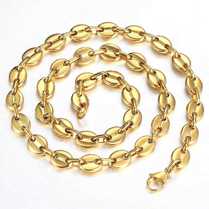 Grains de café lien chaîne 7/9/11MM collier couleur or couleur argent acier inoxydable hommes femmes géométrique corde bijoux en gros