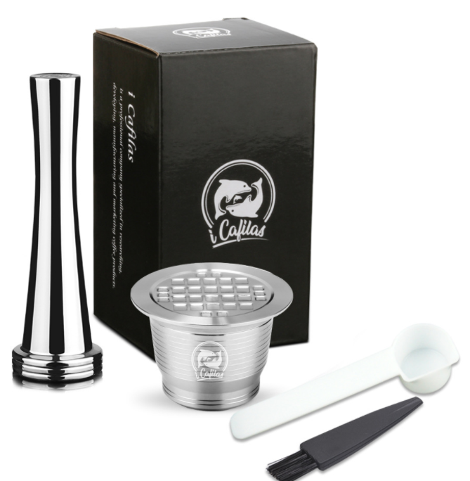 Capsule de Café en Acier Inoxydable 304 Rechargeable et Réutilisable pour Espresso, avec Cuillère et Brosse