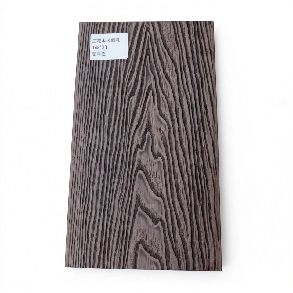 Planches de terrasse en composite WPC couleur café, à emboîtement, pour extérieur, installation facile, creuses et rondes, pour rénovation de jardin