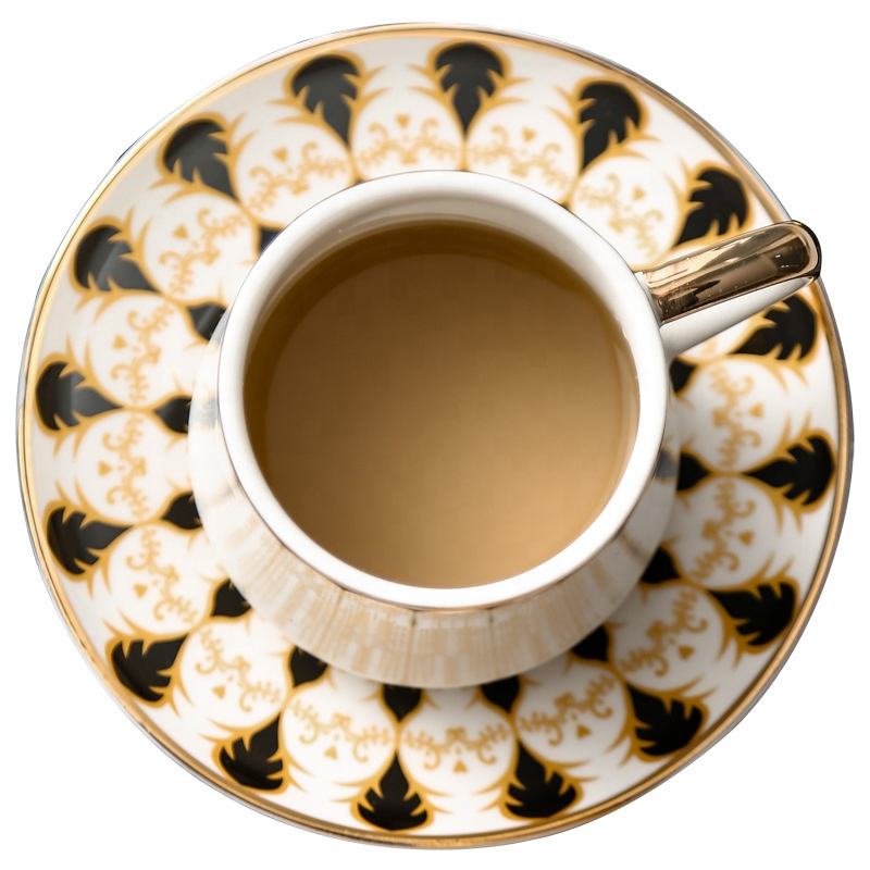 Ensemble de tasses à café 6 pièces, nouveau Design turque, soucoupe en céramique plaquée or, outils Espresso à la maison, céramique éthiopienne