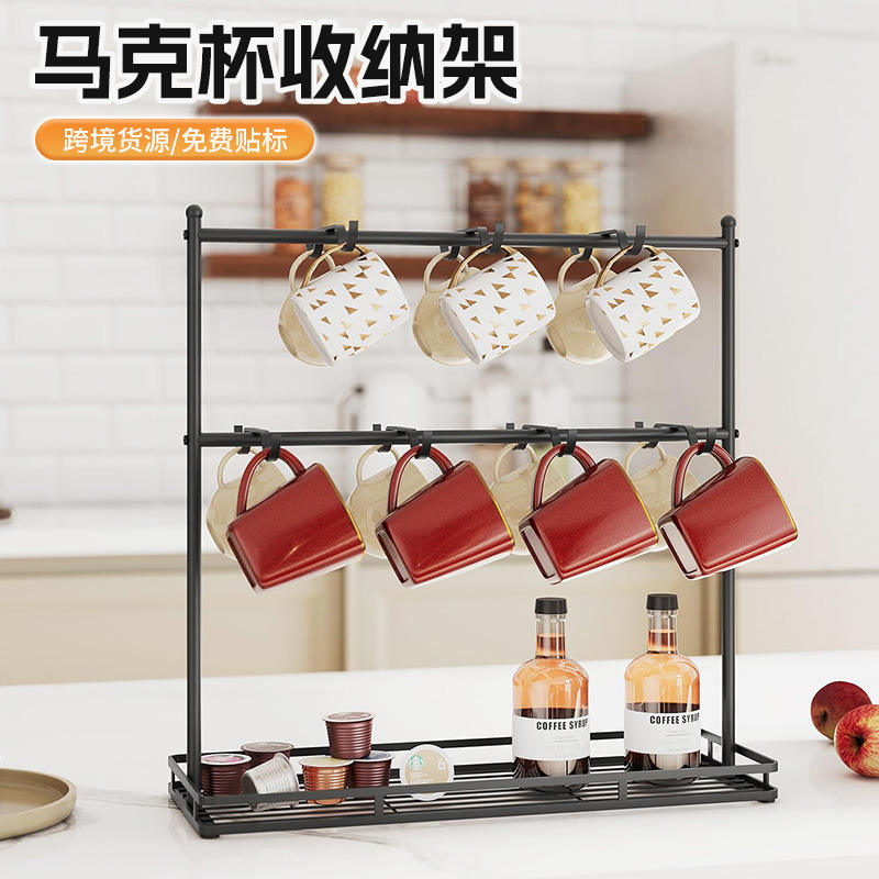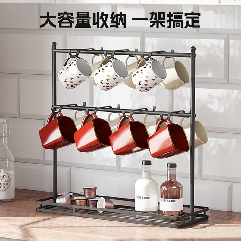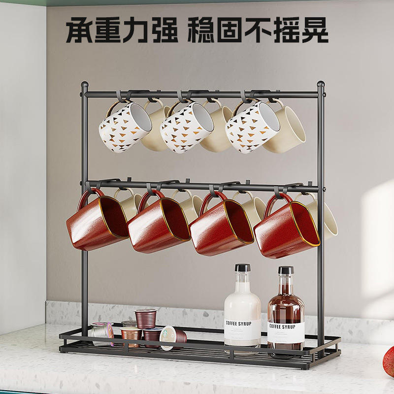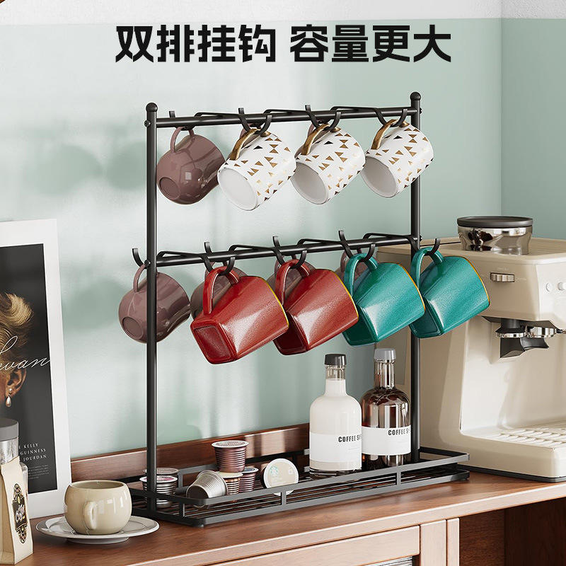 Coffee Cup Storage Rack Iron Double Row Hooks 3 Layers Hanging Draining Rack For Kitchen Desktop Use