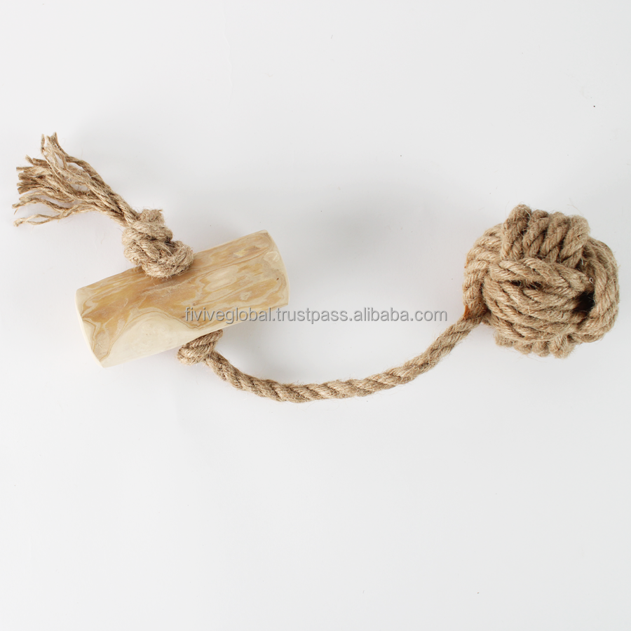 Boules à mâcher en chanvre pour chiens, combinant bois naturel et chanvre, boule à mâcher durable qui favorise le nettoyage dentaire et le jeu actif