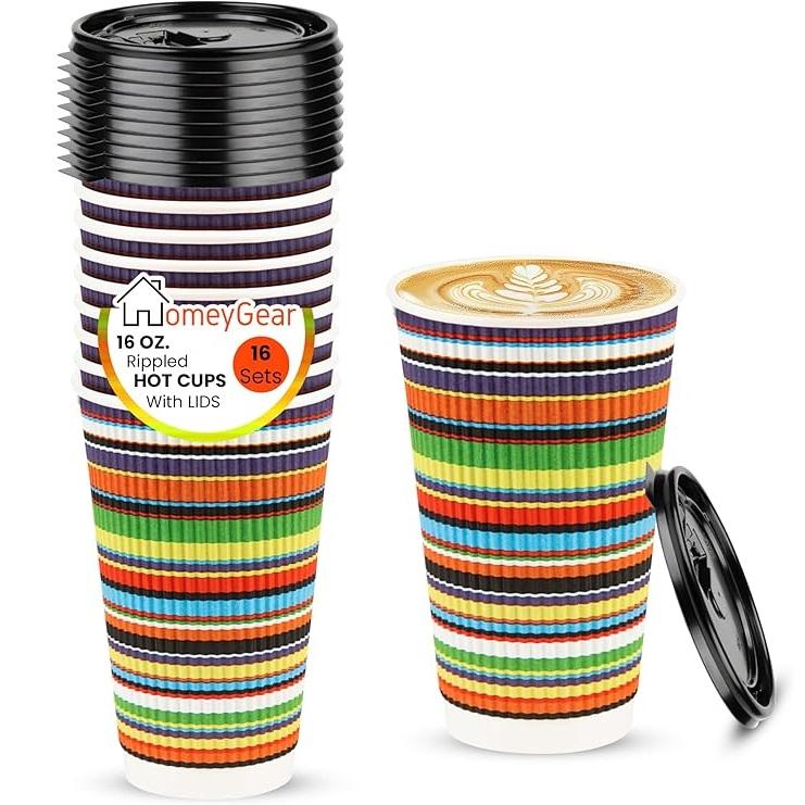 Gobelets en papier imprimés personnalisables de qualité alimentaire de mur d'ondulation jetable biodégradable d'amant de café avec des couvercles en gros