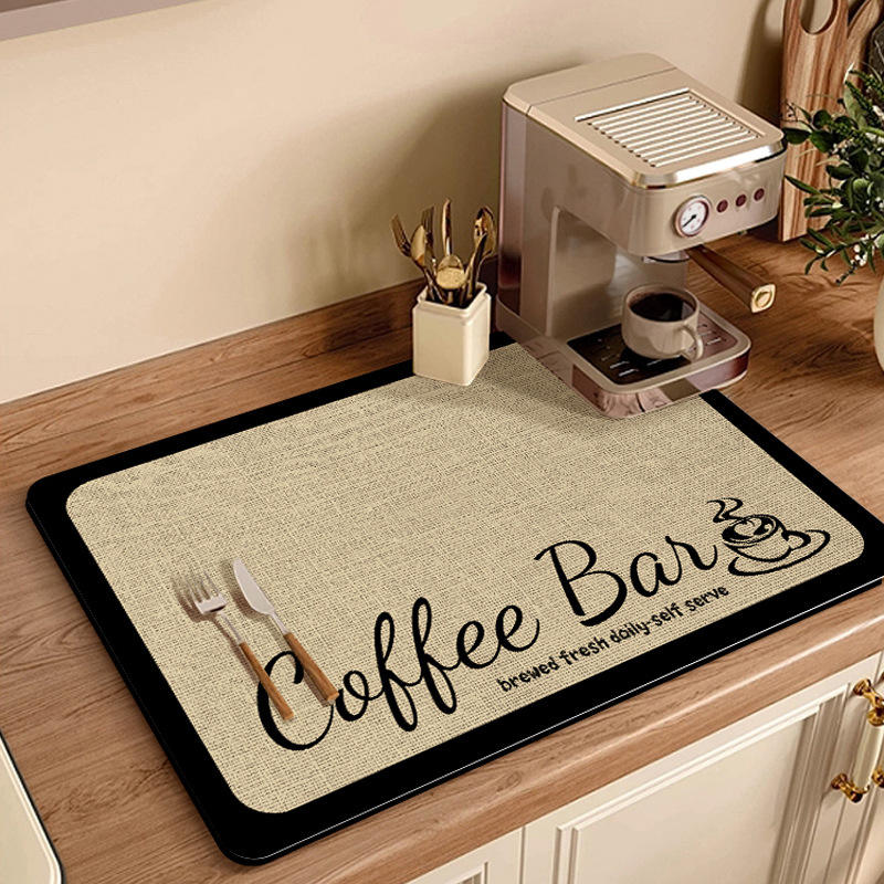 Tapis absorbant pour machine à café 30x40cm 40x60cm en fibre de polyester, tapis de drainage de cuisine pour table à manger, design moderne