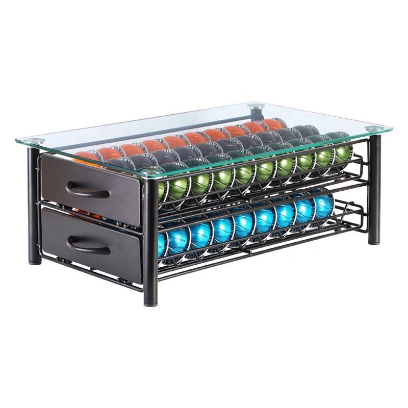 Tiroir de rangement pour dosettes de café Nespresso Vertuo, capacité 40 dosettes, support en métal avec dessus en verre, à placer sous la machine, station à expresso