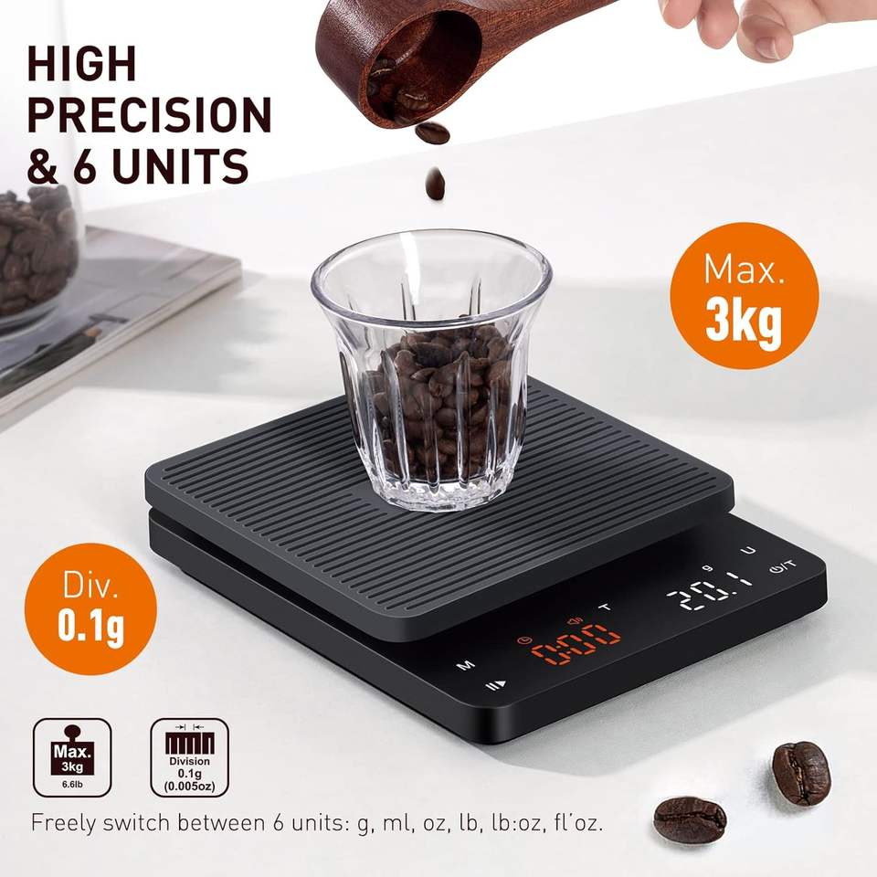 Balance à café avec minuteur, haute précision 0,1g, pour café filtre et expresso, avec fonction tare automatique