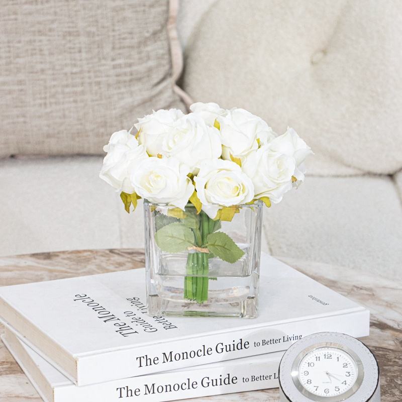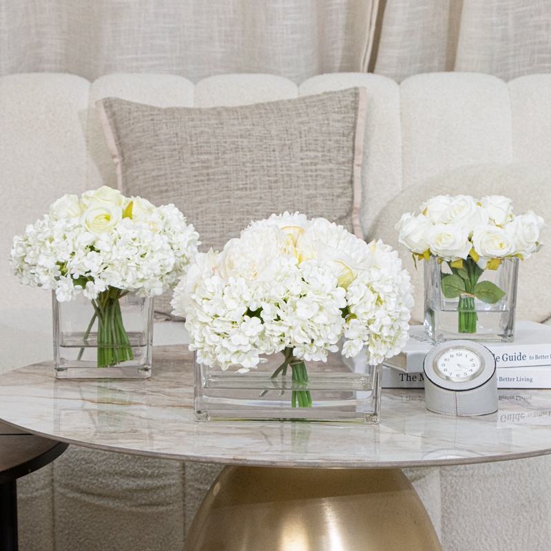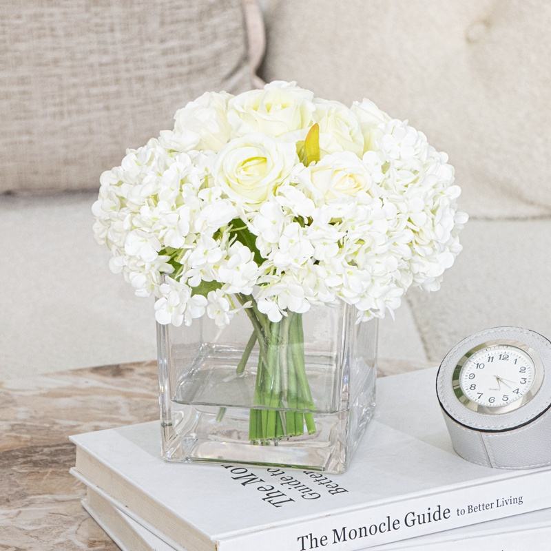 Peony & Hydrangea & Small Rose & False Water & Glass Vase