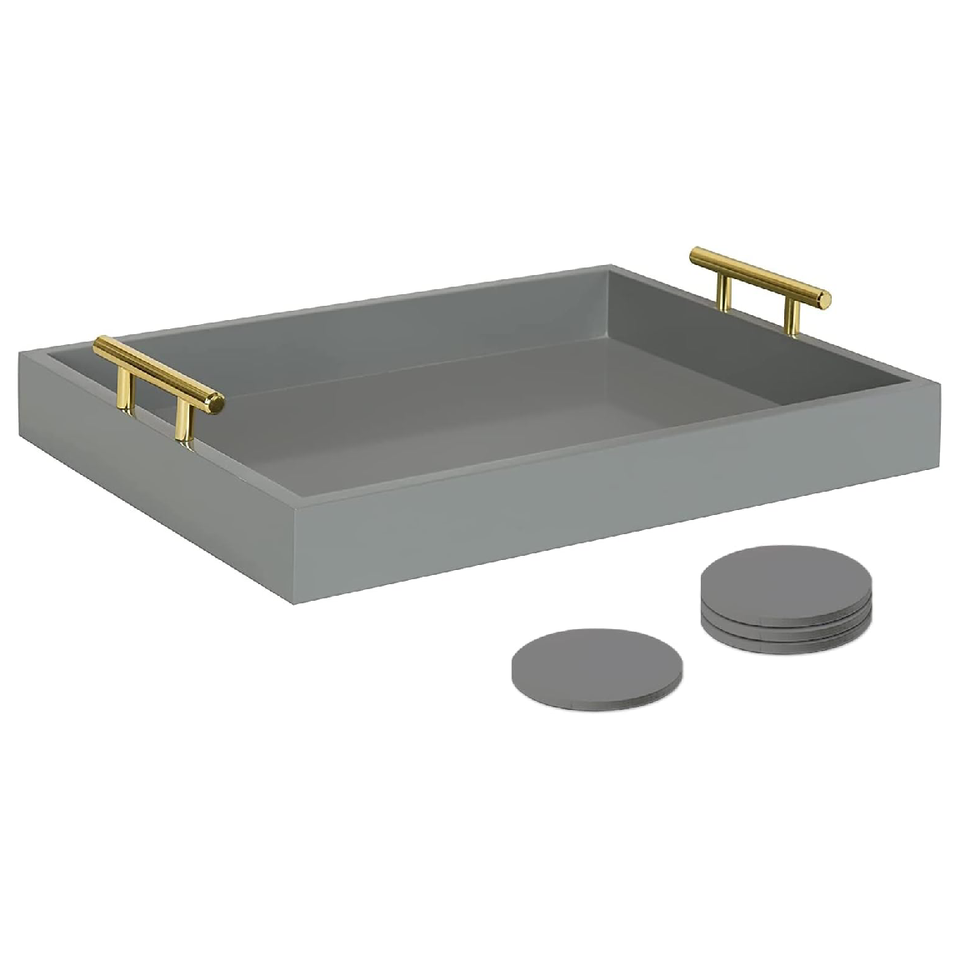 Plateau de service en MDF avec poignées en métal et sous-verres