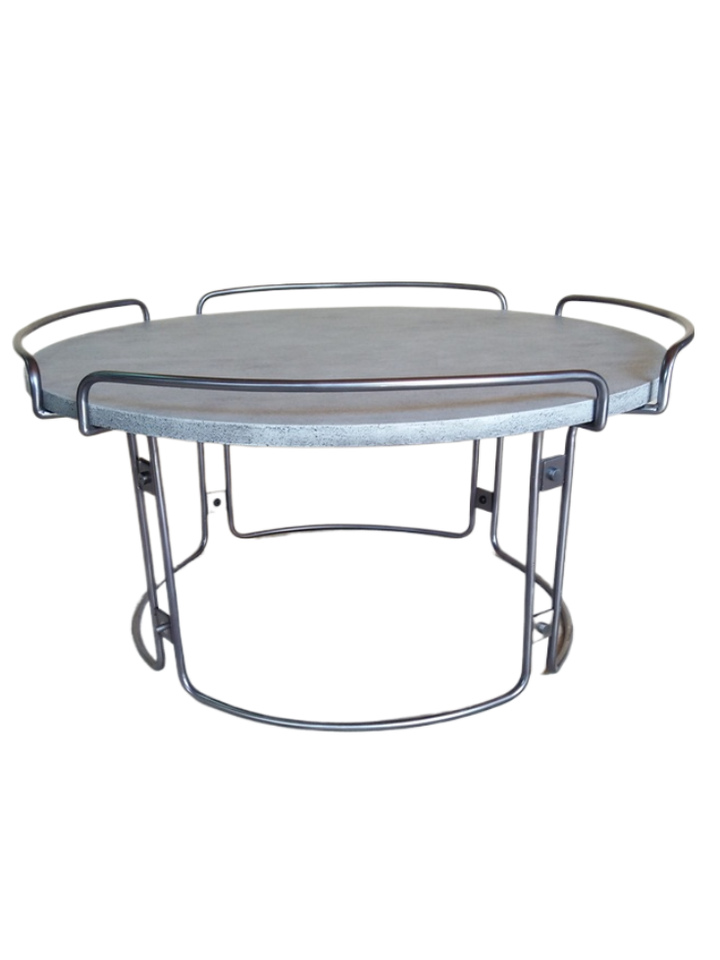 Bois de pin, / Plateau en ciment et tube en métalMatériel