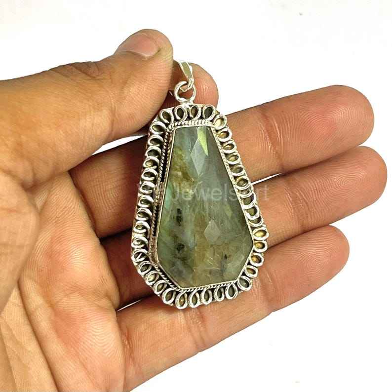 Pendentif en labradorite en forme de cercueil, plaqué or, argent 925, fait main, élégant, vintage, cadeau de fiançailles en pierre précieuse pour femmes
