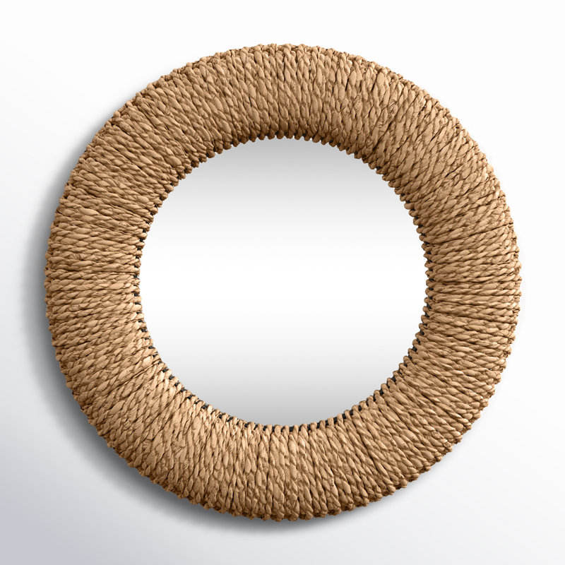 Miroir mural à cadre en rotin tissé enroulé Accessoire de chambre décoratif unique