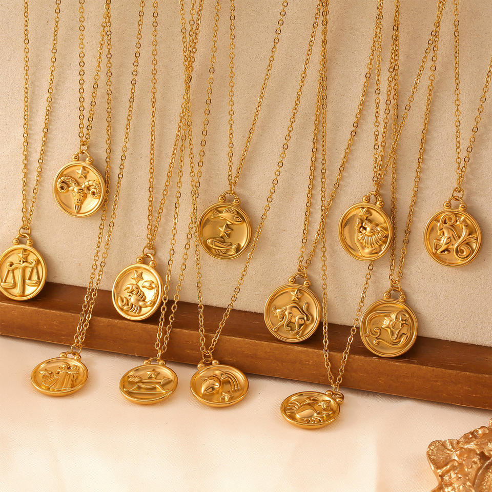 Collier ras du cou avec pendentif rond en or plaqué 18 carats, motif astrologique des 12 signes du zodiaque, cadeau pour femme